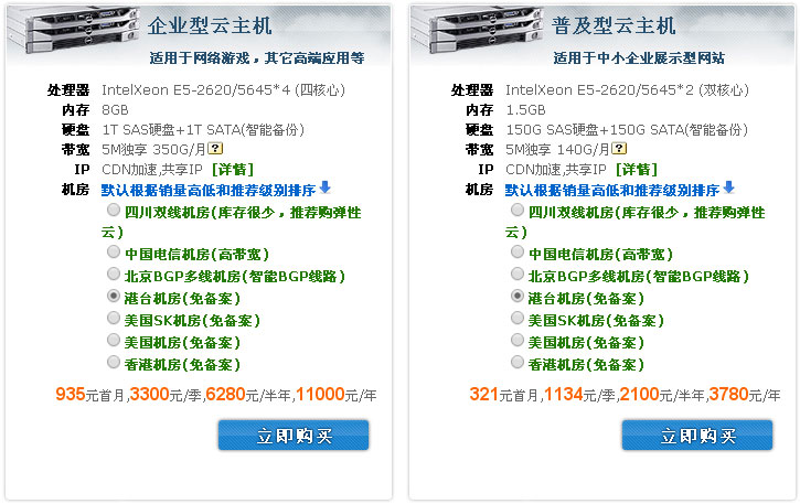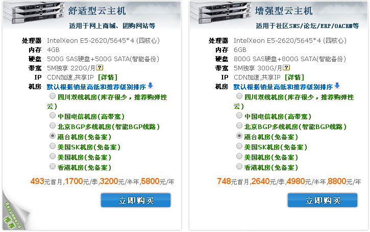 温馨提示:以上价格仅为港台机房线路的价格(仅供参考),不同的线路价格也不同,购买套餐云主机(云服务器)请联系网页底部客服QQ根据您的实际情况所需进行购买,谢谢!